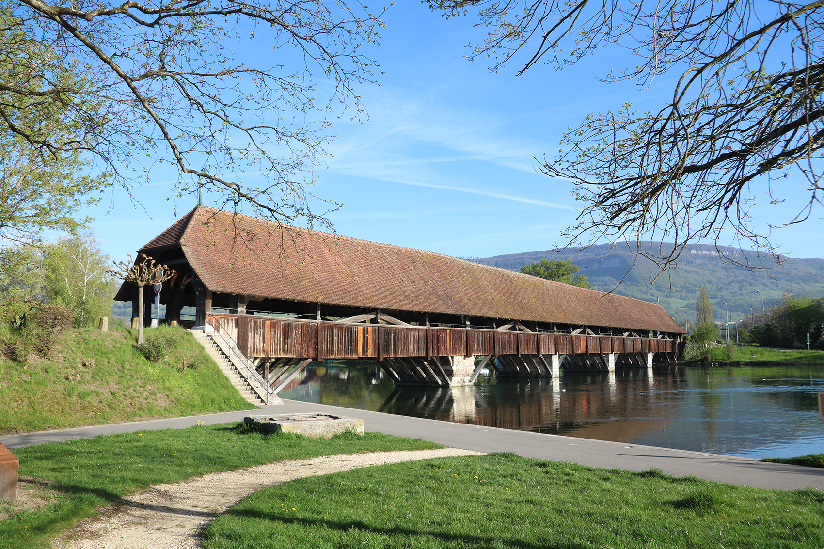 In mehr als 650 Jahren hat die Holzbrücke so einiges erlebt, wie ein Blick in die Geschichtsbücher und das Zeitungsarchiv deutlich macht. Die Brücke bei Wangen ist bis heute die zweitlängste noch bestehende Holzbrücke der Schweiz und sie ist auch heute noch – zwar nur einspurig – befahrbar.