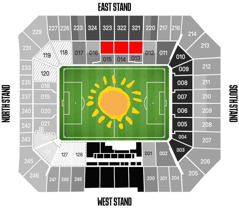 - Gepolsterte Premium-Sitzplätze auf der Osttribüne an der Mittellinie
