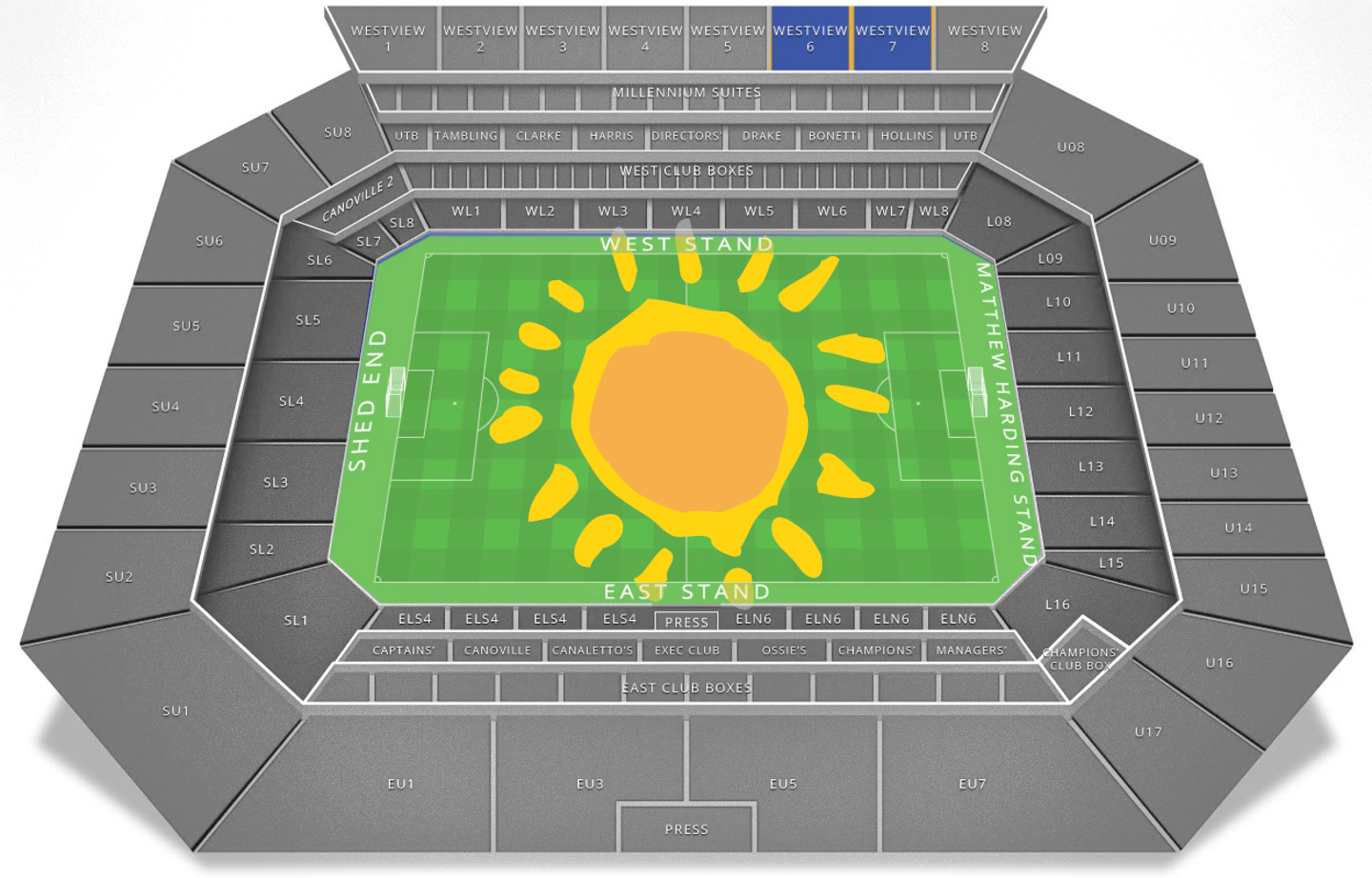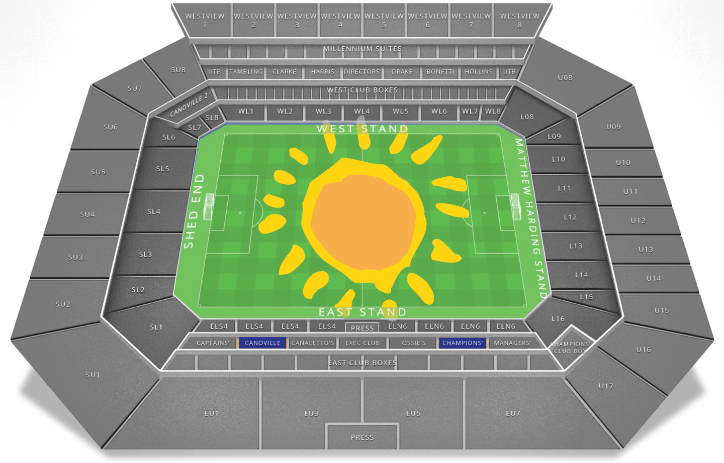 - Zugang zur Canoville Suite ab 2,5 Stunden vor dem Anpfiff und 1 Stunde nach dem Spiel