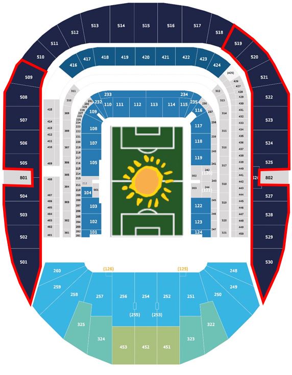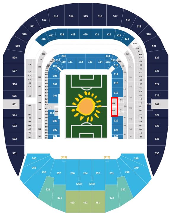 - Ost Premium-Sitzplätze Untere Reihe Mittellinie