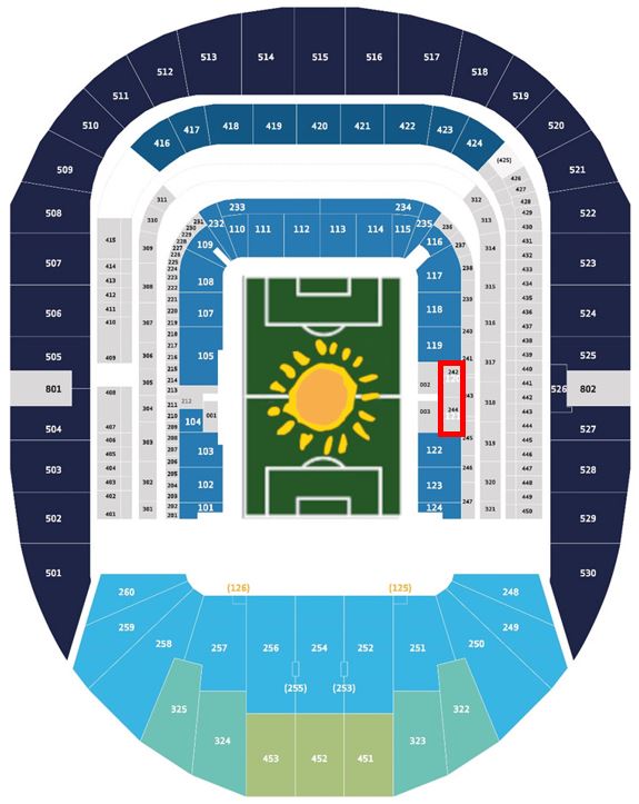 - Gepolsterte Sitze in den Blöcken 242 - 244