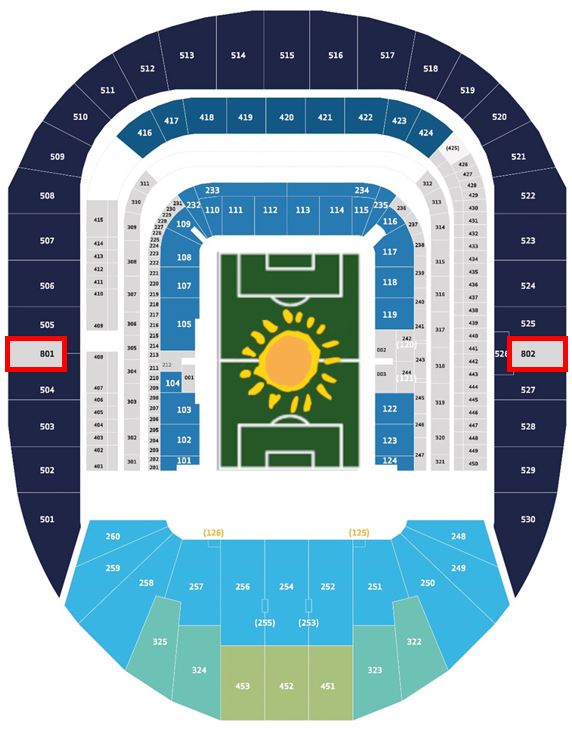 - Offizielle Sitzplätze auf Ebene 5 auf der Gerade