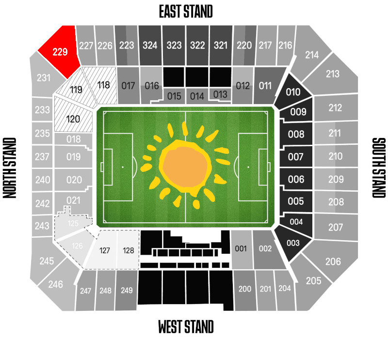 - Sitzplatz auf der Nordtribüne (Block 229)