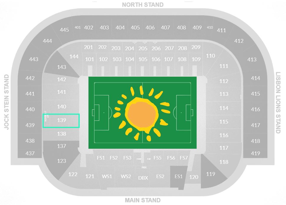- Gepolsterte Sitze auf der Westtribüne Block 139